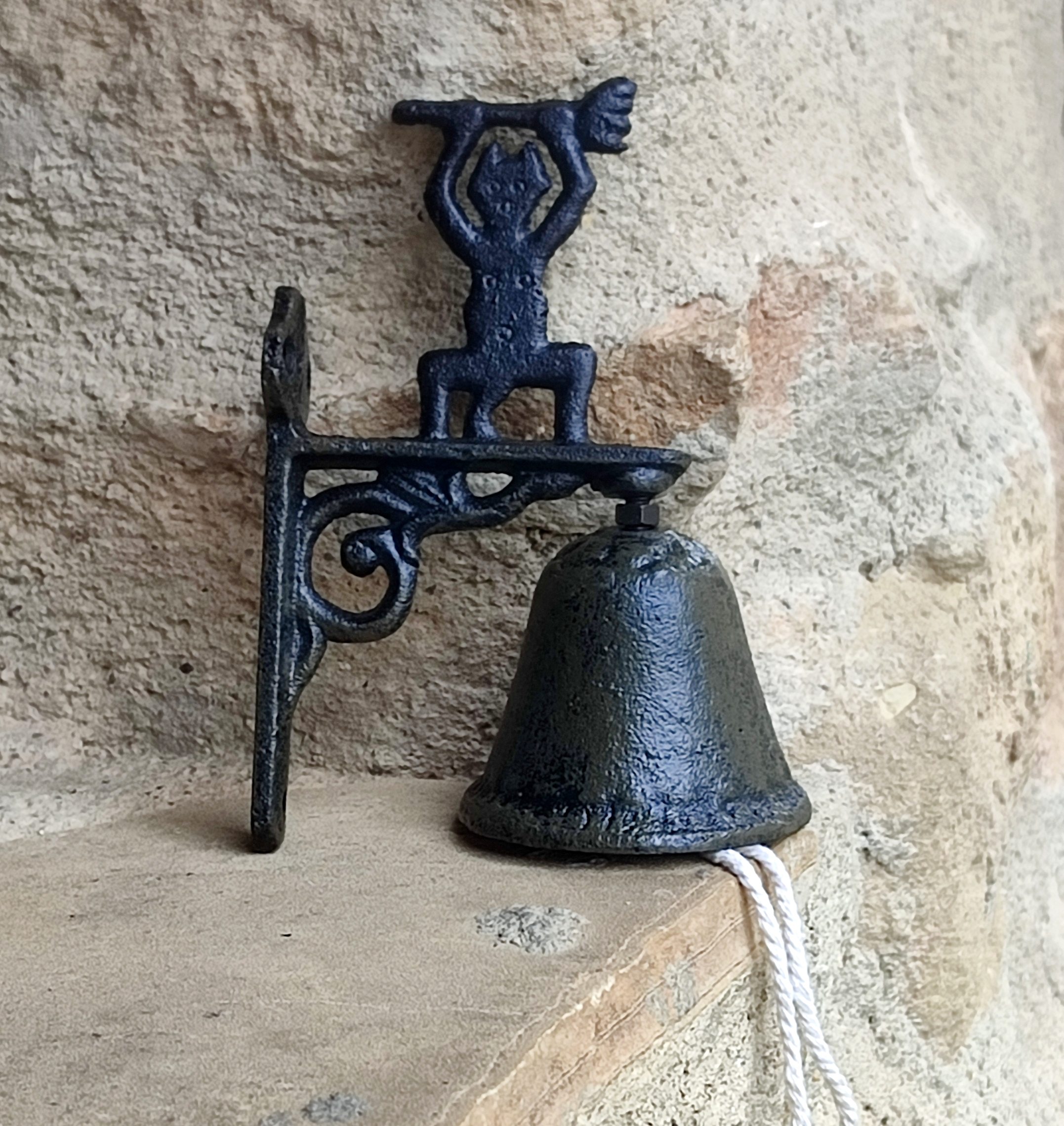 Preciosa campana de hierro fundido modelo diablo de Timanfaya. Sonido muy agradable.